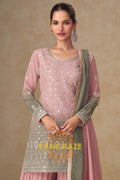 Blush Sage Pure Georgette Hand Embroidered Sharara Suit Set