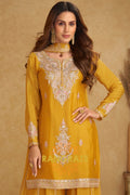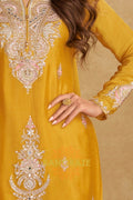 Mustard Gold Pure Chinnon Suit Set with Hand Embroidery