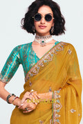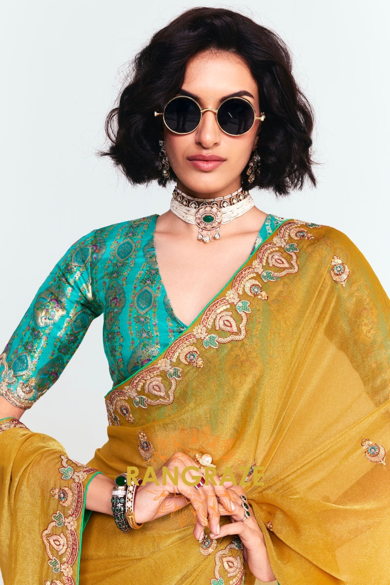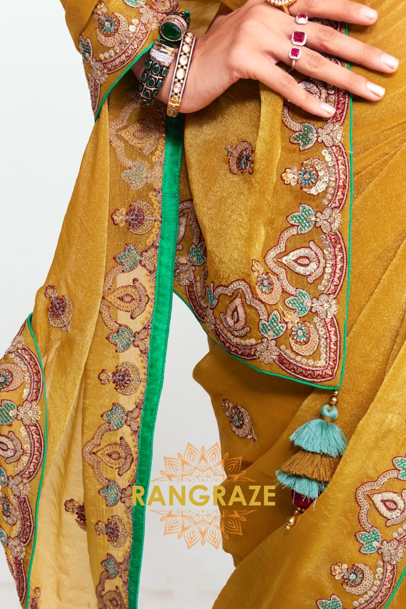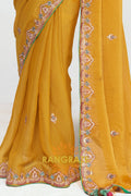 The RangRaze Mustard Yellow Soft Silk Embroidered Saree is designed to make a statement at every celebration. Crafted from premium soft silk, this saree features a rich mustard hue that beautifully captures the warmth of traditional Indian festivities.