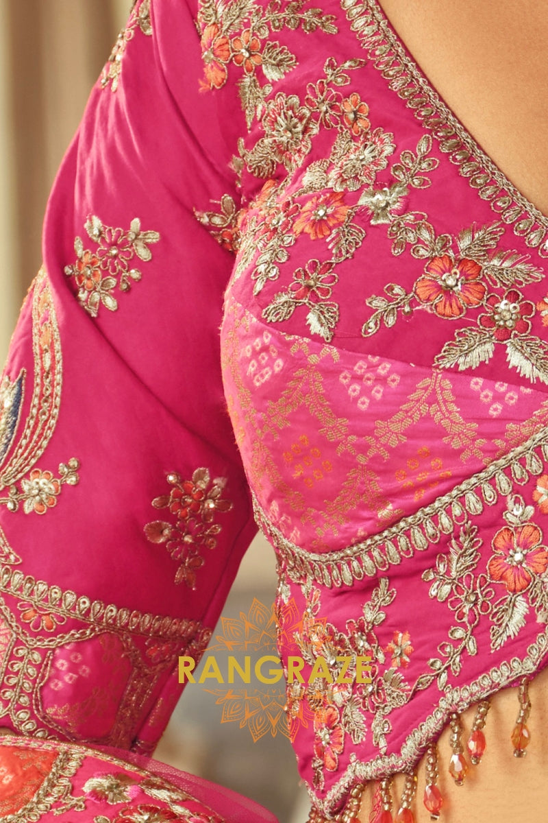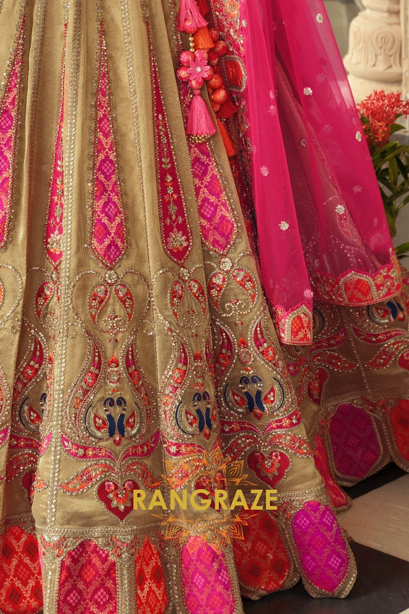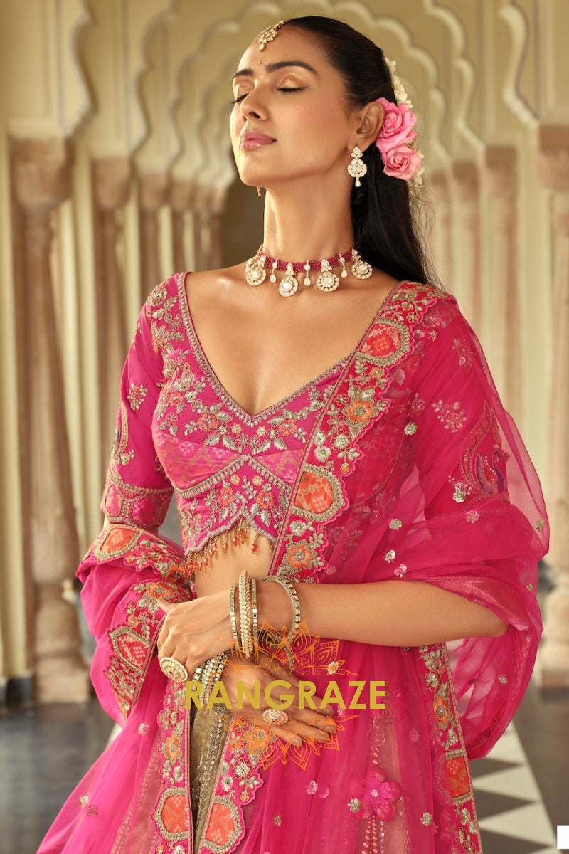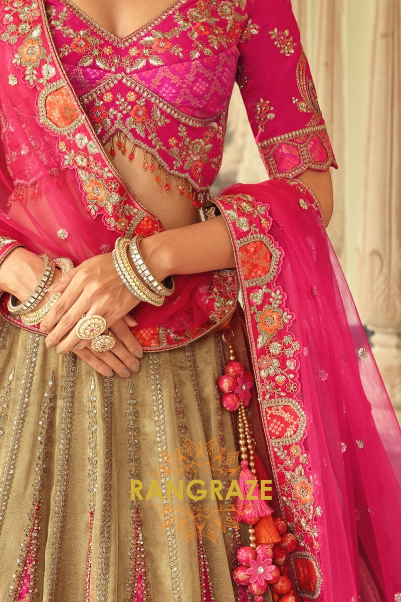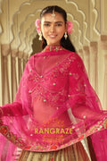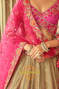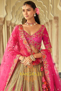 Step into regal glamour with this Rose Gold & Fuchsia Ready-to-Wear Embroidered Lehenga, a luxurious ensemble that blends opulent tones with exquisite detailing, perfect for weddings, receptions, and grand celebrations.