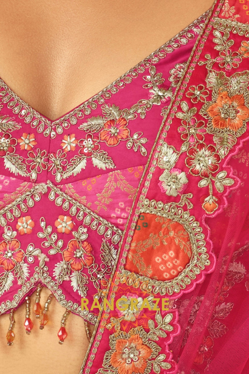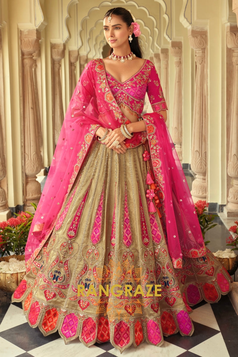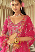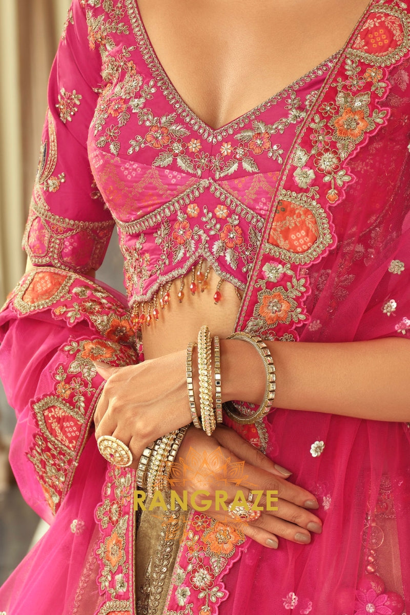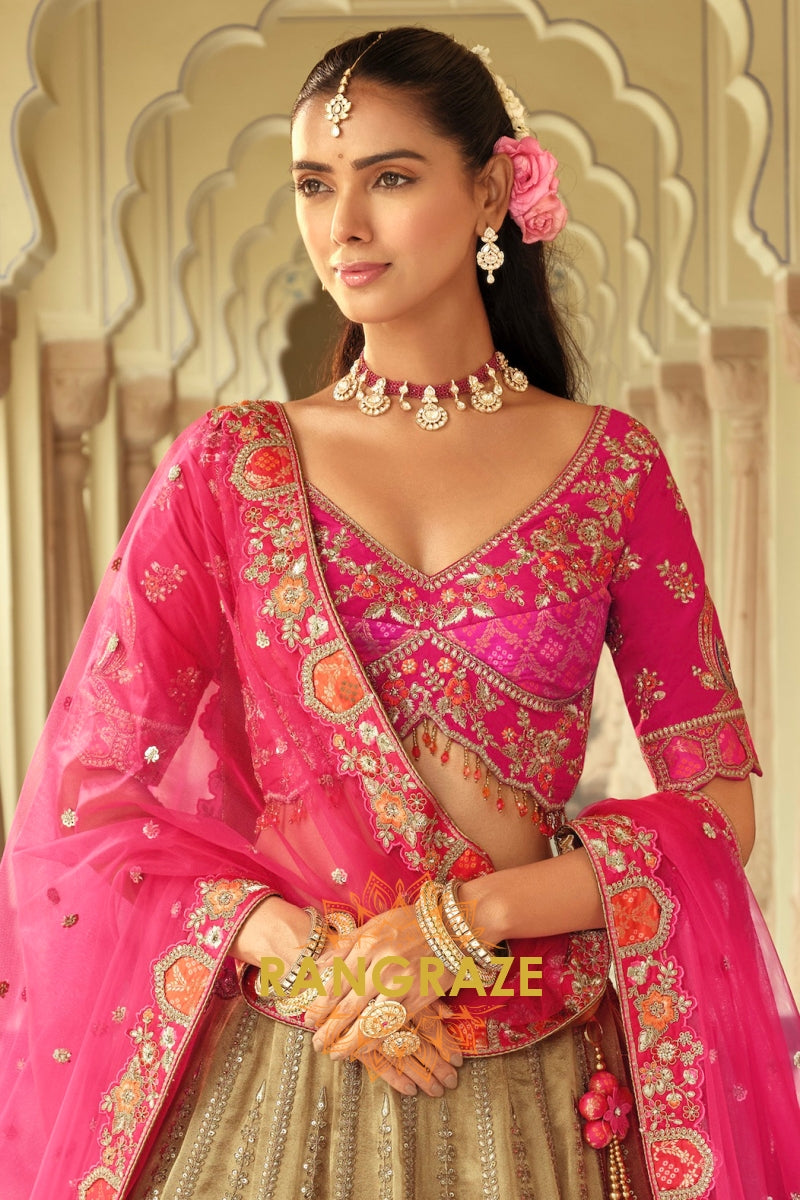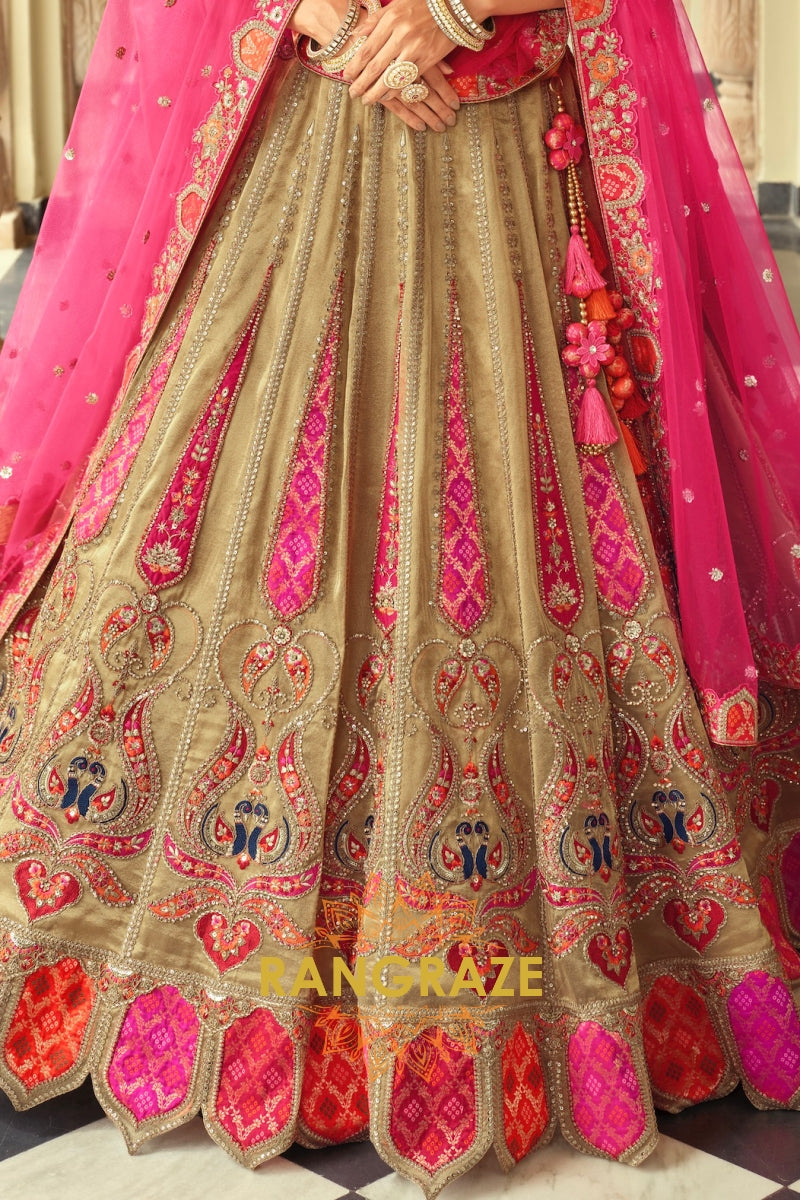 Step into regal glamour with this Rose Gold & Fuchsia Ready-to-Wear Embroidered Lehenga, a luxurious ensemble that blends opulent tones with exquisite detailing, perfect for weddings, receptions, and grand celebrations.