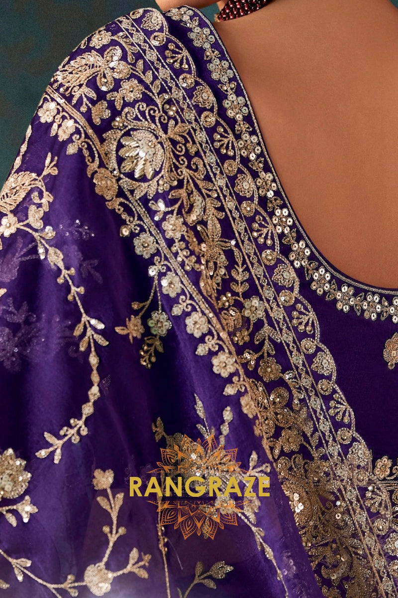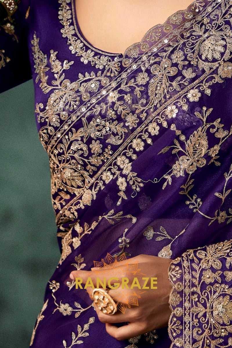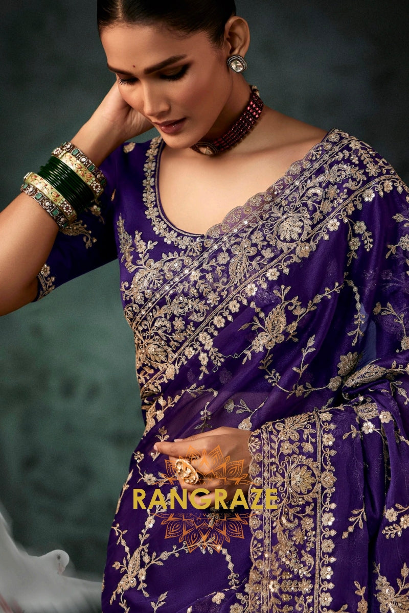 Drape yourself in timeless grandeur with this Royal Purple Designer Embroidered Saree, a statement ensemble that embodies regal elegance and meticulous craftsmanship, perfect for weddings, receptions, and high-profile celebrations.