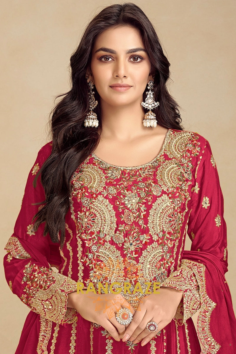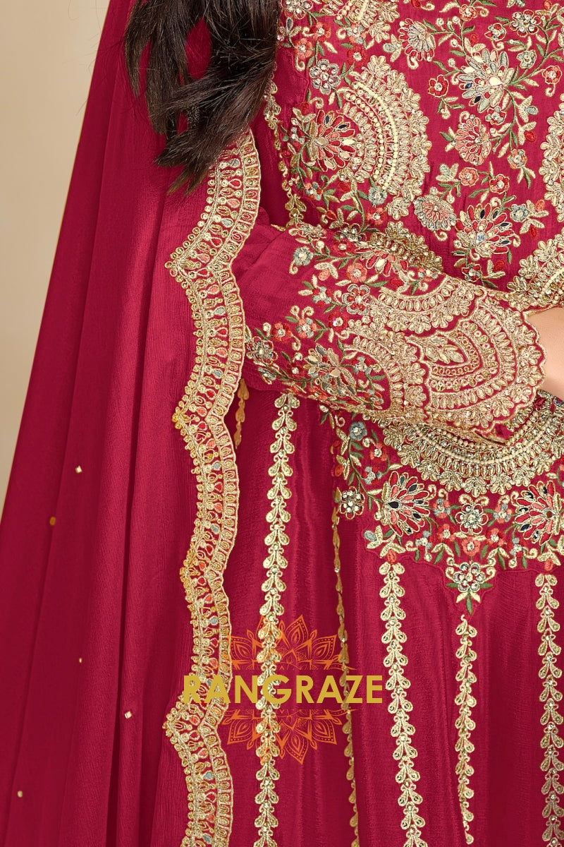 Ruby Royale Premium Chinon Heavy Embroidered Suit Set