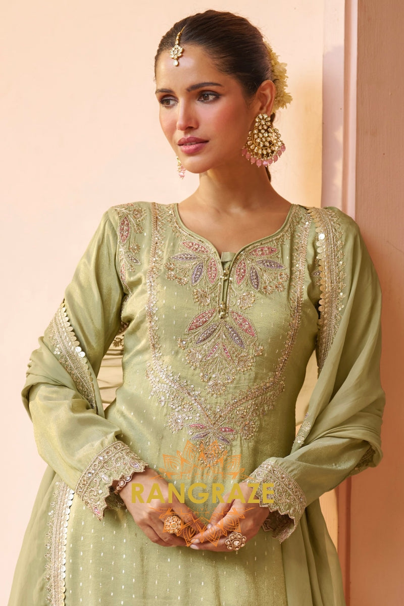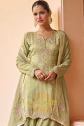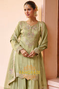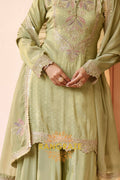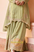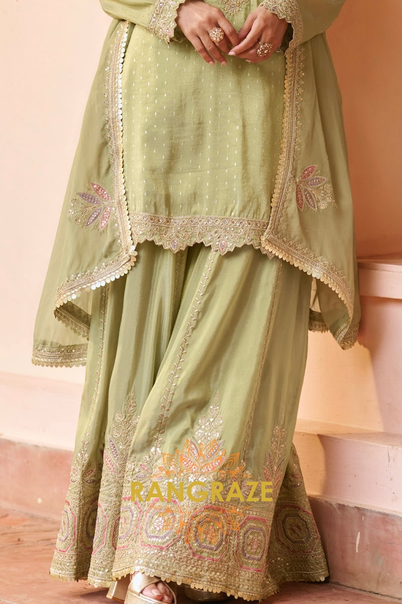 Sage Green Embroidered Premium chinon Sharara Suit Set