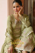 Step into effortless sophistication with this Sage Green Embroidered Sharara Suit Set, designed for women who appreciate subtle luxury and timeless craftsmanship.