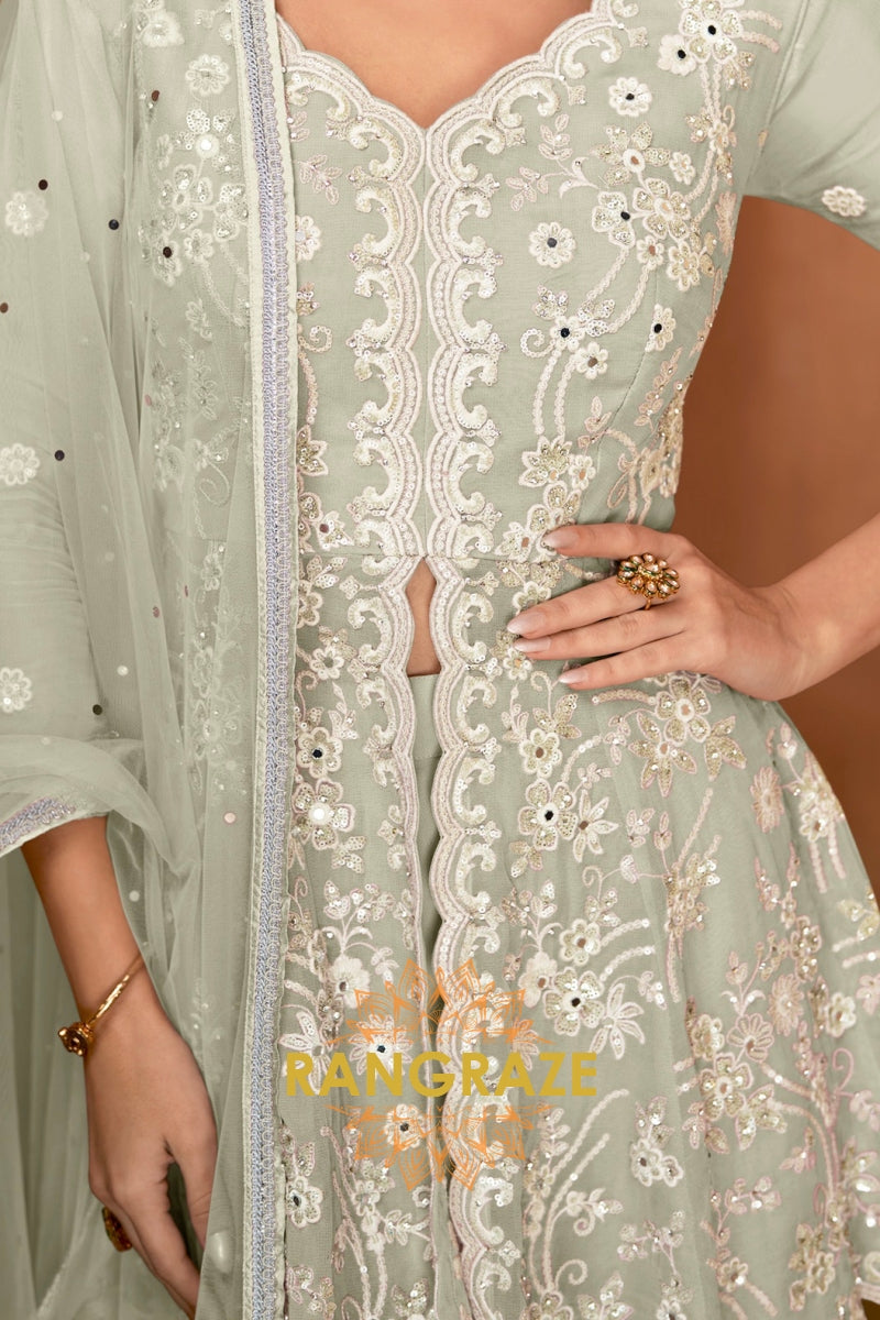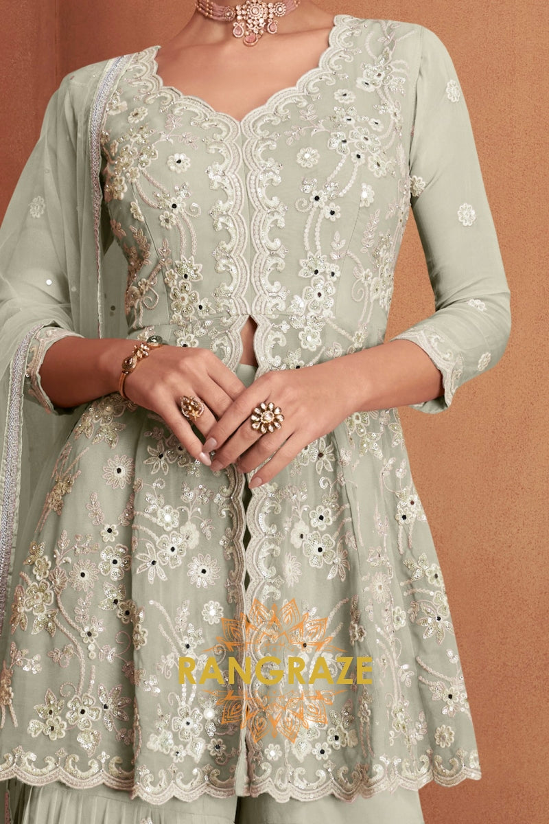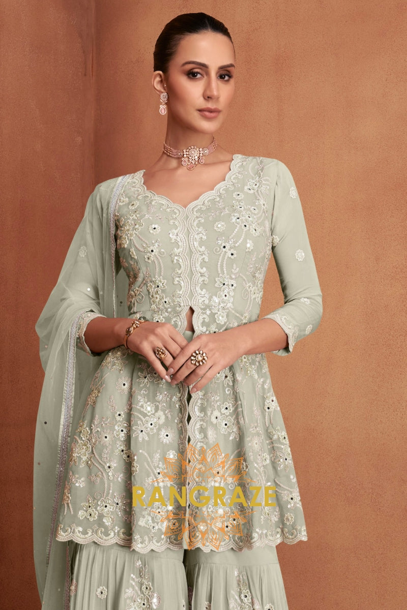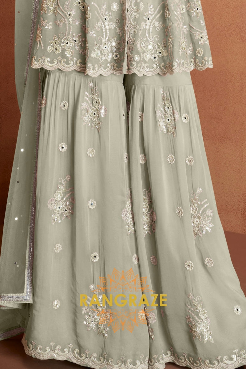 Sage Green Pure Premium Georgette Embroidered Sharara Suit with Dupatta