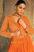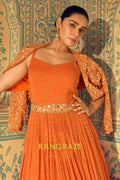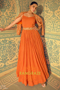 Tangerine Glow Georgette Gown Suit with Embroidered Jacket