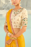 Drape yourself in radiant elegance with this Yellow Pure Silk Designer Embroidered Saree, a graceful ensemble that reflects timeless charm and refined craftsmanship, making it a perfect choice for weddings, festive occasions, and celebratory gatherings.