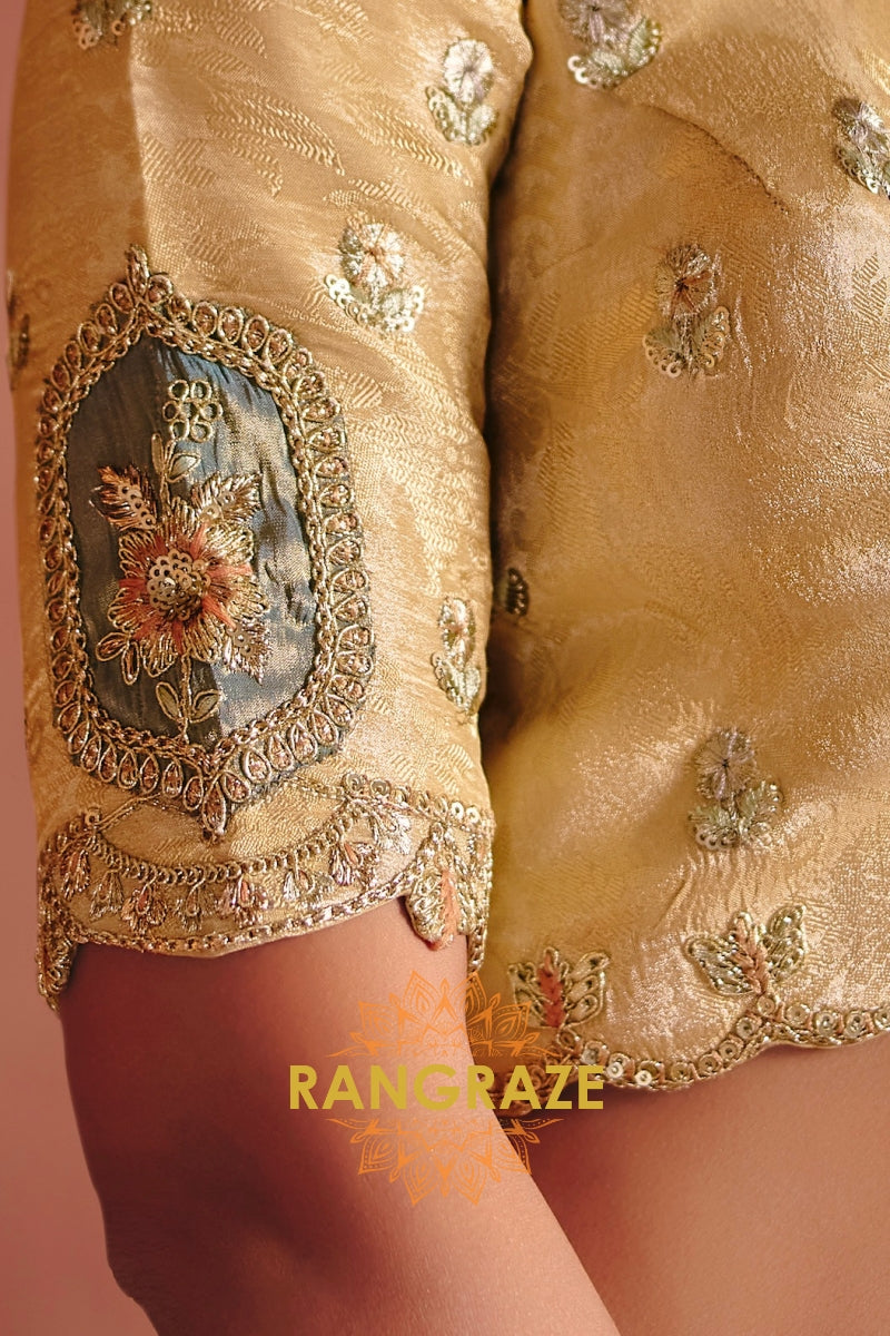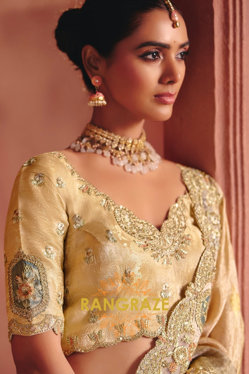 Paired with a heavily embroidered matching designer blouse, this saree is an ideal choice for weddings, receptions, festive occasions, and traditional functions. A statement ensemble that reflects heritage artistry with modern luxury.